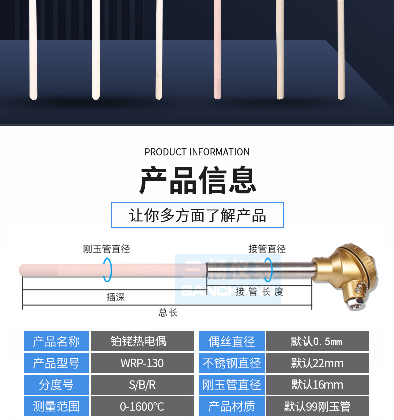 三畅 铂铑热电偶 WRP-131 L=650MM(插入深度)0-1600℃