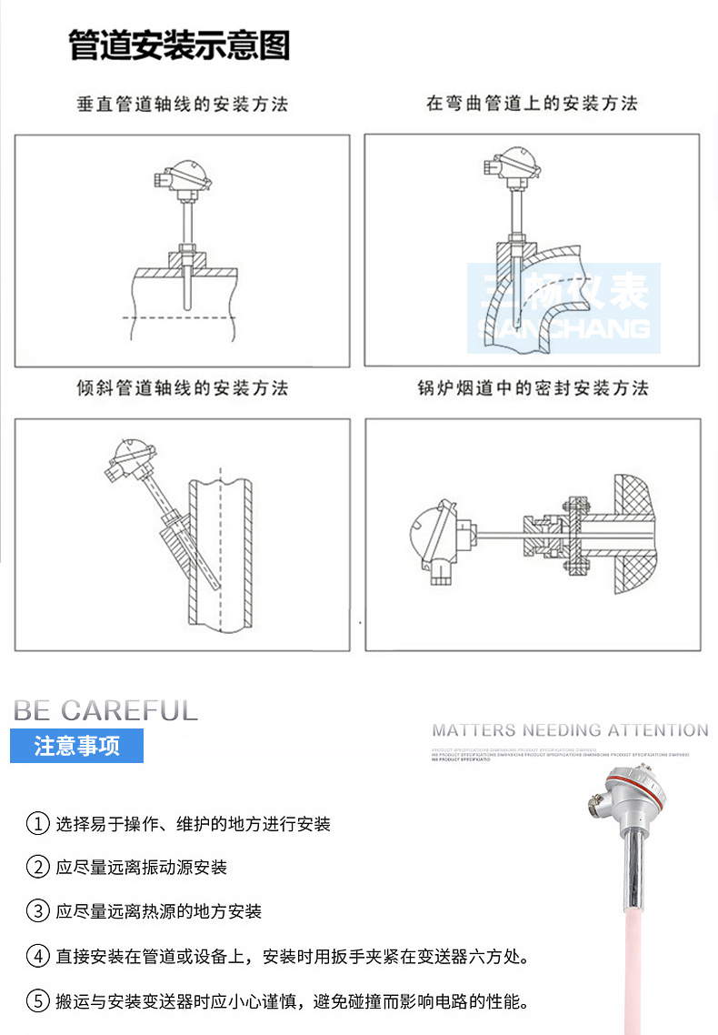 三畅 WRN-231固定螺纹热电偶 WRN-131无固定K型装配式热电 0-1300度